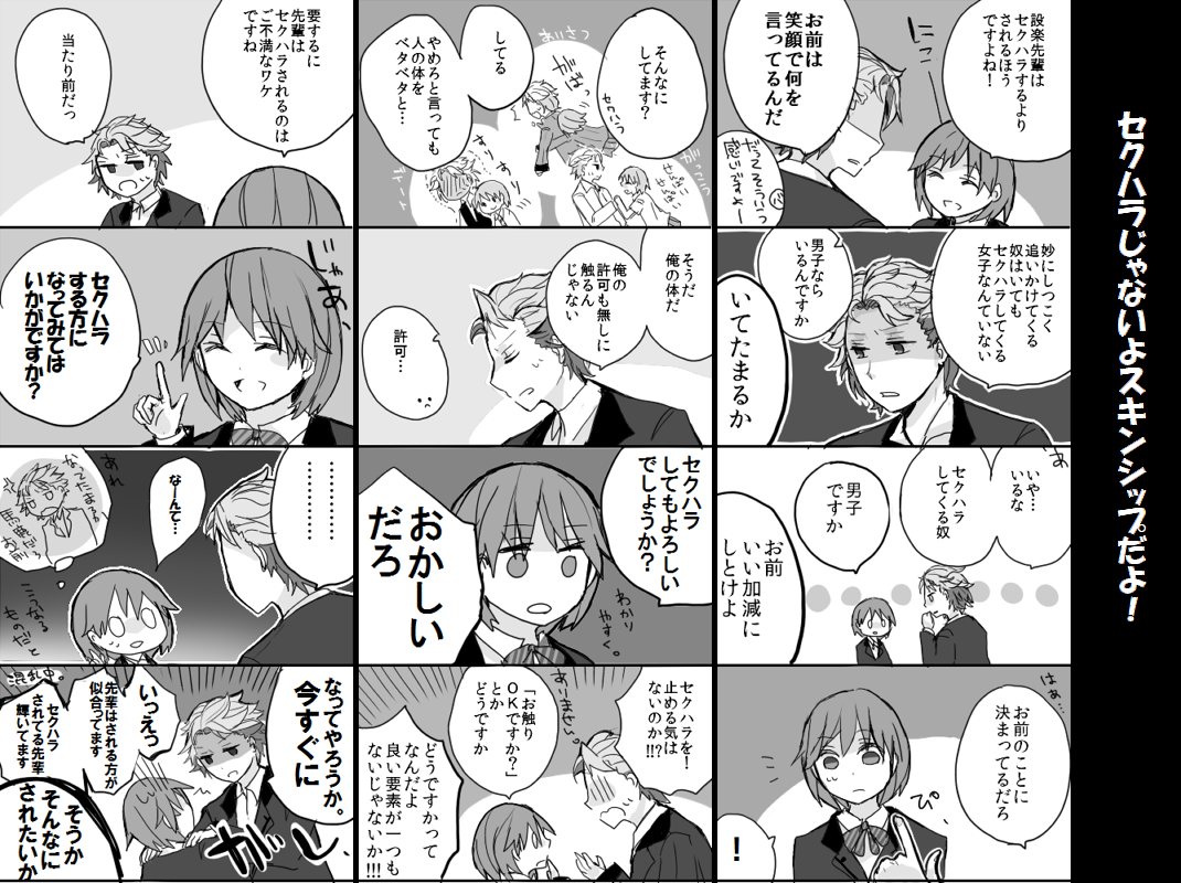 クリックで拡大です。設楽先輩は、されるほうだと、思う。本編でバンビがどこまでのスキンシップしてるかは謎ですが真ん中一番上のコマよりも大分すごいことやってるんでしょうかね。それともあれですか好きな子にされてるからとかなんですかね。ときめきメモリアルGSなのですしもっとときめきのあるマンガを描きたいです